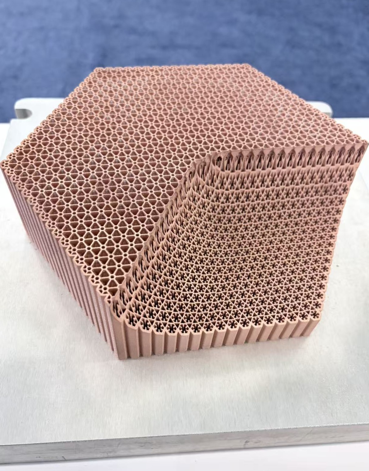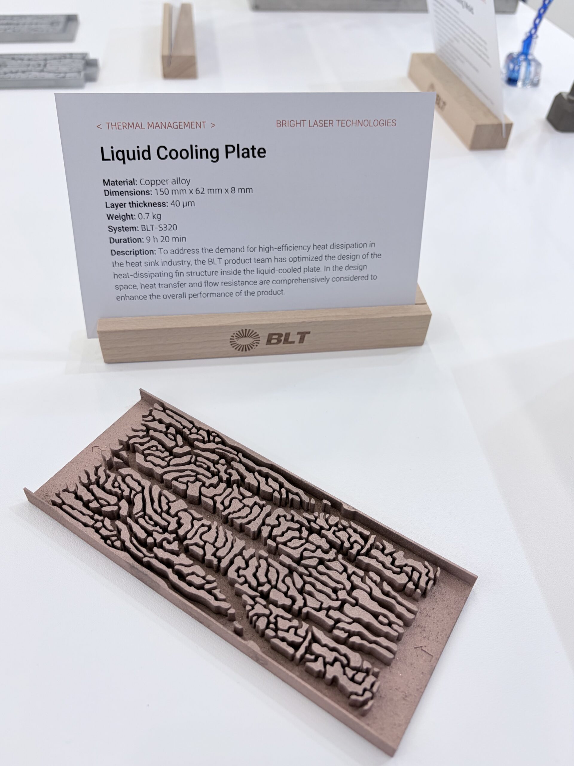 铂力特现场展示了金属增材制造在热管理领域的规模化能力,并重点呈现了其在铜材料打印方面的突出成果。这些打印件能在紧凑空间内实现复杂内部结构一体成形,同时在大批量生产中的可保持性能一致性与尺寸精度,为热管理关键零部件的增材制造提供了稳定、可复现的工业化解决方案。
